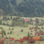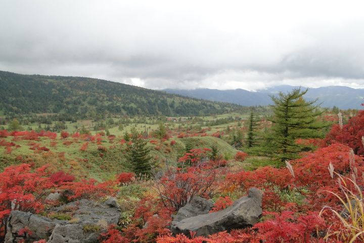 一足早い紅葉を長野県の渋峠よりお届けいたします。この光景は比較的多くの人がカレンダー等でご覧に成った事が有るかと思います。昨年の松栄ライフサービスのカレンダーもそうでした。芳ヶ平を眼にした時から、紅葉の時期に行きたいと思っておりました。ルートは関越の渋川伊香保インターからR145号で中之条、長野原からR292号で草津温泉、白根山、渋峠のルート、全行程約150Kmで約3時間半でした。途中の吾妻渓谷ではまだ葉が緑色で、カミサンが一言、「あらー紅葉してないじゃない」。小心者の私は「ドキッ」マズイと思いましたが、現地に着きホッといたしました。そのうえ芳ヶ平に詳しい人と逢い、お話を伺ったところ今日がここ数日で一番との事、前日の雨と気温の低下が紅を一層際立たせているとのことでした。
